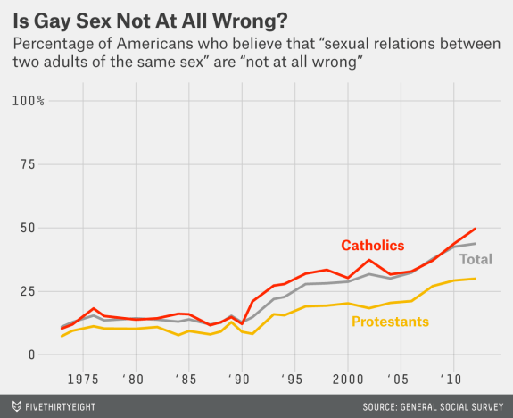 To some longstanding traditional Catholics who are not following the fad, this is well-known. Their excuse is that Catholicism has been subverted and to some extent I actually agree. However, to the Catholics who hold this position ask yourself this question: If it were the reverse that protestants were more liberal that Catholics, would you give us the benefit of the doubt that this is not the result of Protestantism but due to subversion? I asked this question to five traditional Catholics and they all said “No”. One eventually flipped and said “yes” but still 4/5 still refused to give us this benefit. To be fair, this is a questionable sample size but the point remains.