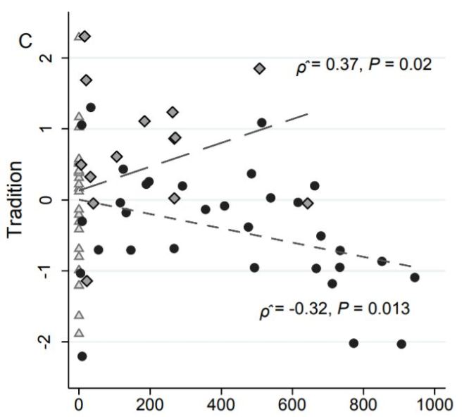 Regarding tradition, exposure to the Catholic church predicted less importance to tradition: